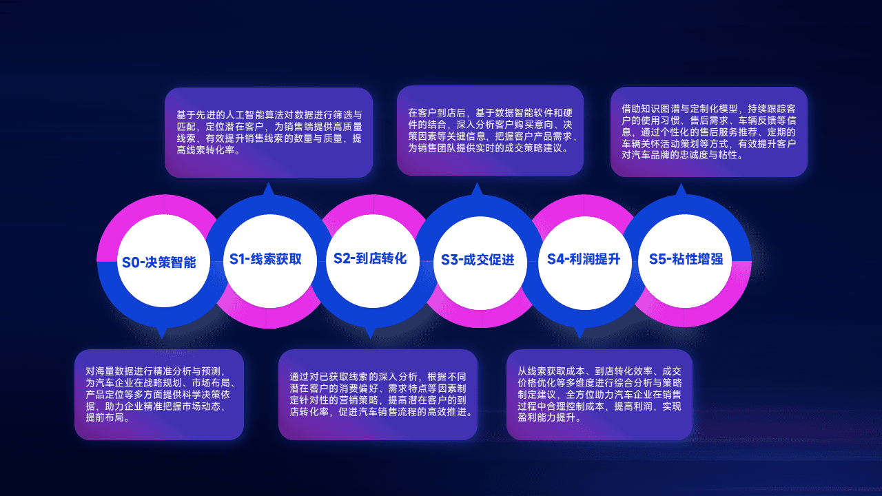 通过拓宽潜在客户来源、、、优化线索分配并提高到店转化率,,,以增强销售效率。。同时,,,,利用线索数据不断优化分析模型,,有效提升转化率,,,扩大营销影响力。。。